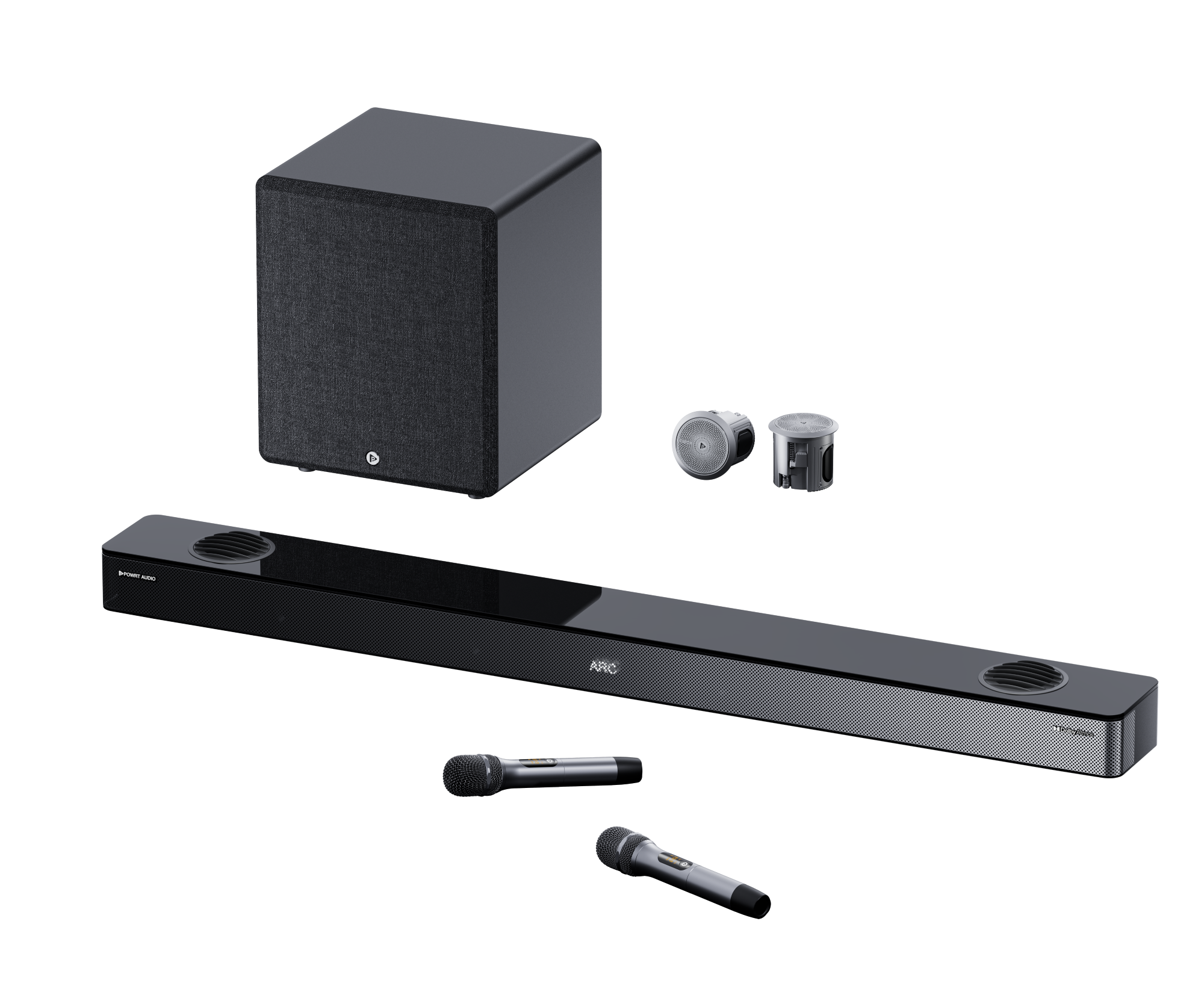 5.8GFHSS跳频技术,与 BAR7.1系统实现±0.5dB声 场精度,游戏枪声、电影 对白零延迟